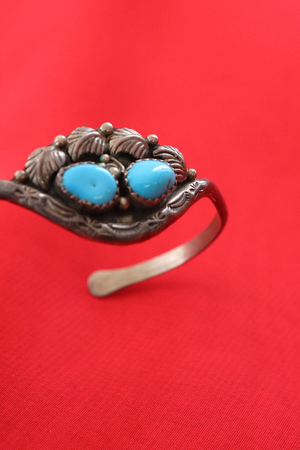 Silver Turquoise Leafy Cuff