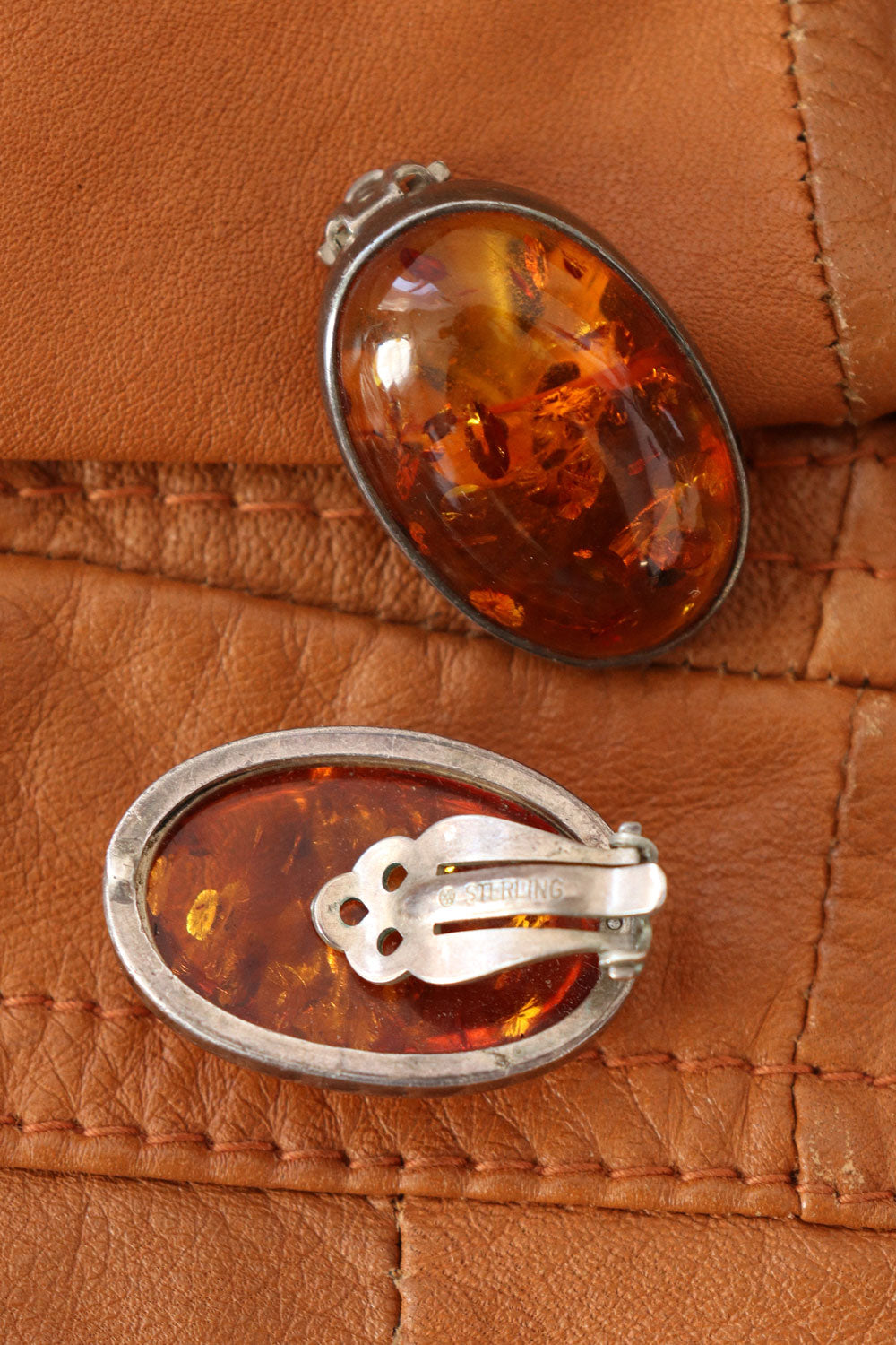 XL Amber Sterling Clip-ons