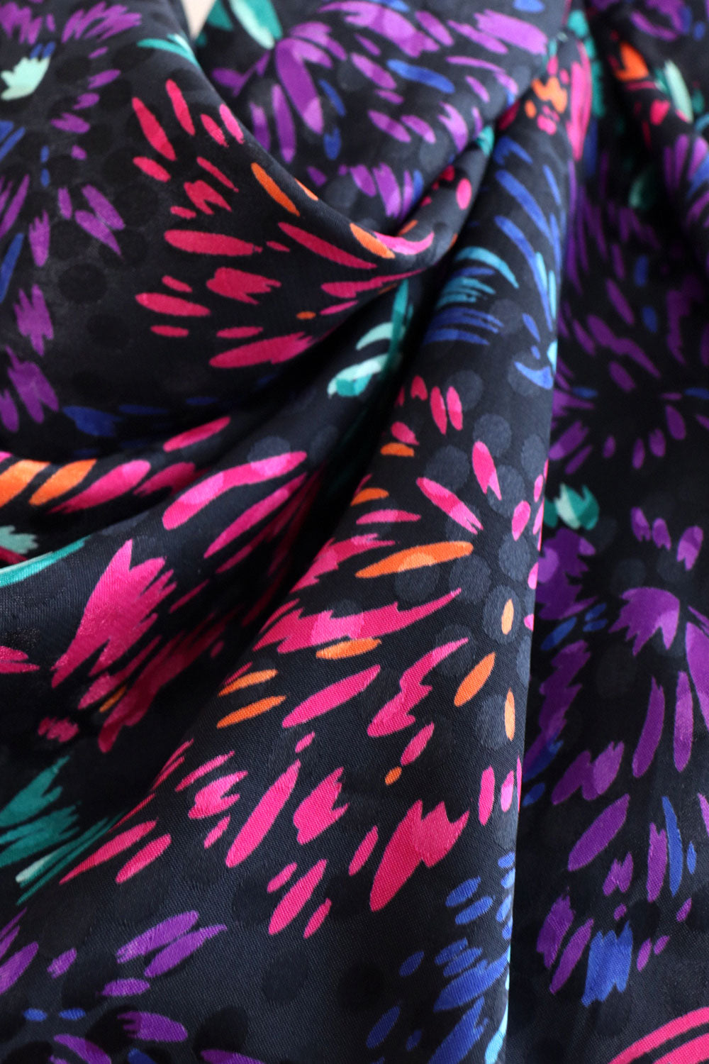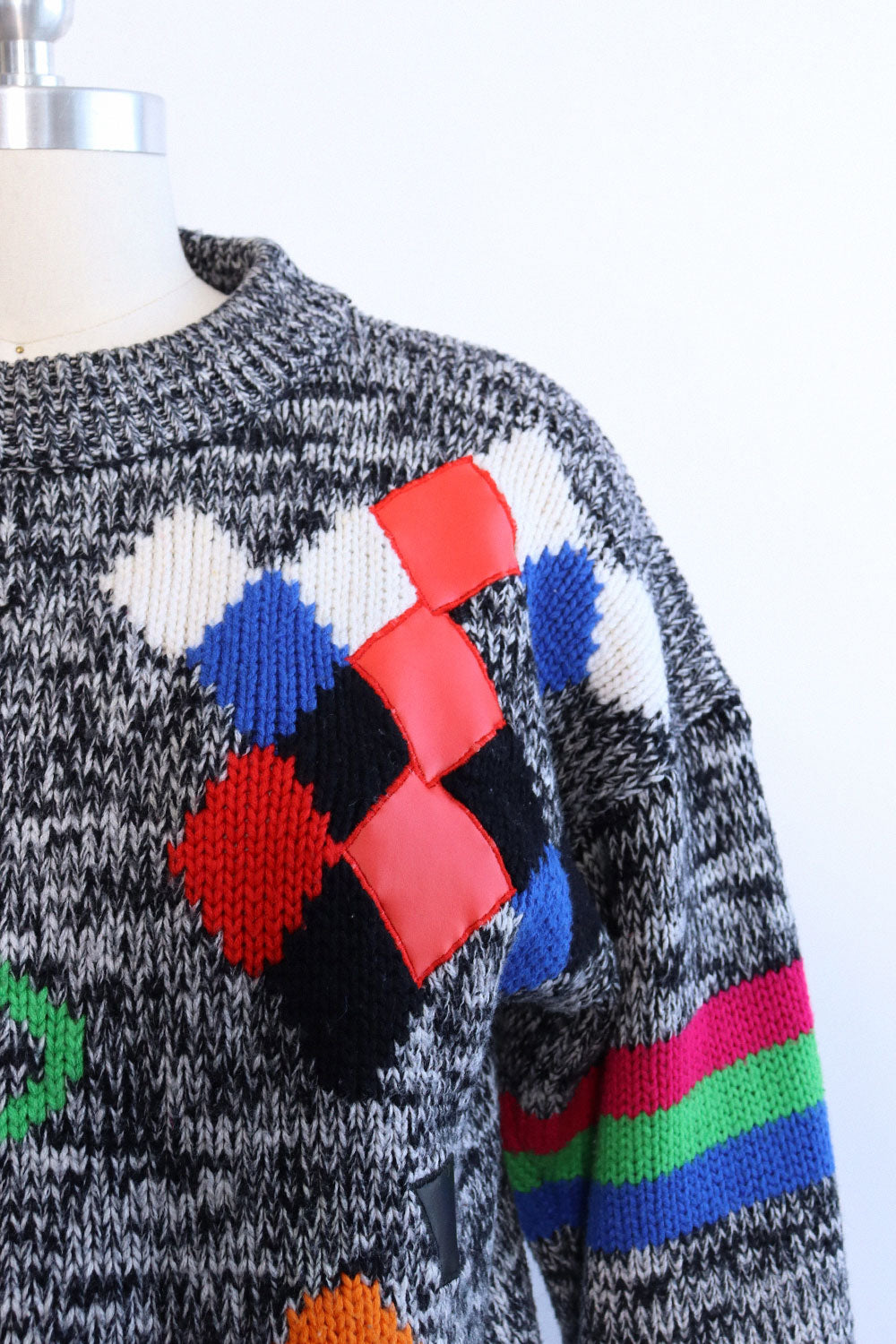 Funky, and très 80s, vintage pumps with an abstract colorful paint stroke design on the pleated fabric upper. Shoes feature a pointed almond toe with low cut vamp and shiny tapered heel. Smooth leather soles, look hardly worn! By label A'Mano USA, circa 1980s.